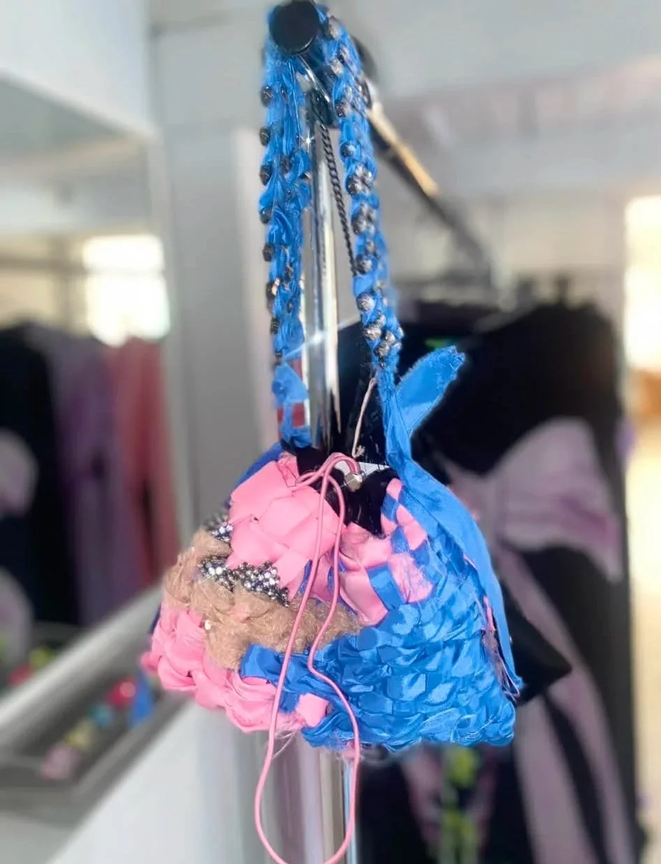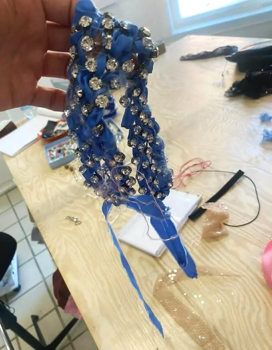 Exemplary to our work, is our focusing on unique products of precious materials as silk and wool, but also worthless materials; recycled leather or waste fabric from limited sources. As a result each product, ranging from a t shirt dress to a bag fully embroydered with crystals, is put together with a thoughtful attention to colour and texture combinations, This work method enables a free, experimental and artistic aproach, mostly uncommon to the fashion industri. This pushes our labels boundaries with both design and production. New models arise that constantly surprise us and fuel new ideas.